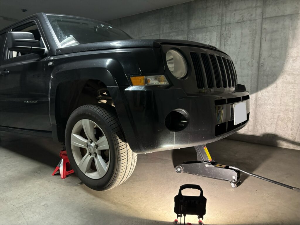 ジャッキアップしたあとにウマを噛ませたが、あまり安定しない。